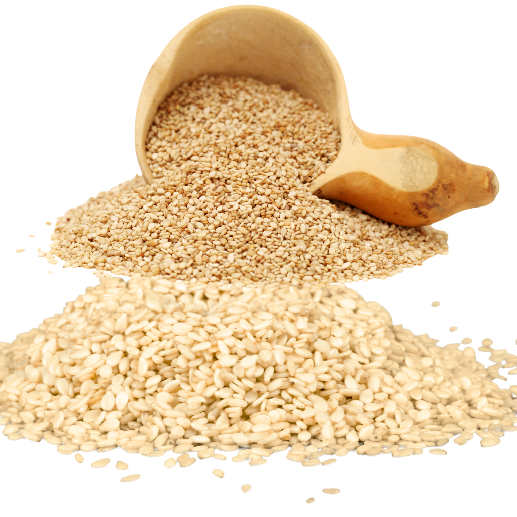 أما السمسم الذهبي المحمّص فيتميّز بمذاقه الفريد الذي يشبه طعم البندق، وهو غني بالألياف ويُعد من الأطعمة الخارقة. يُستخدم في تحضير الخبز، والحلويات، وخبز البرغر لإضافة نكهة مميزة وقرمشة لذيذة